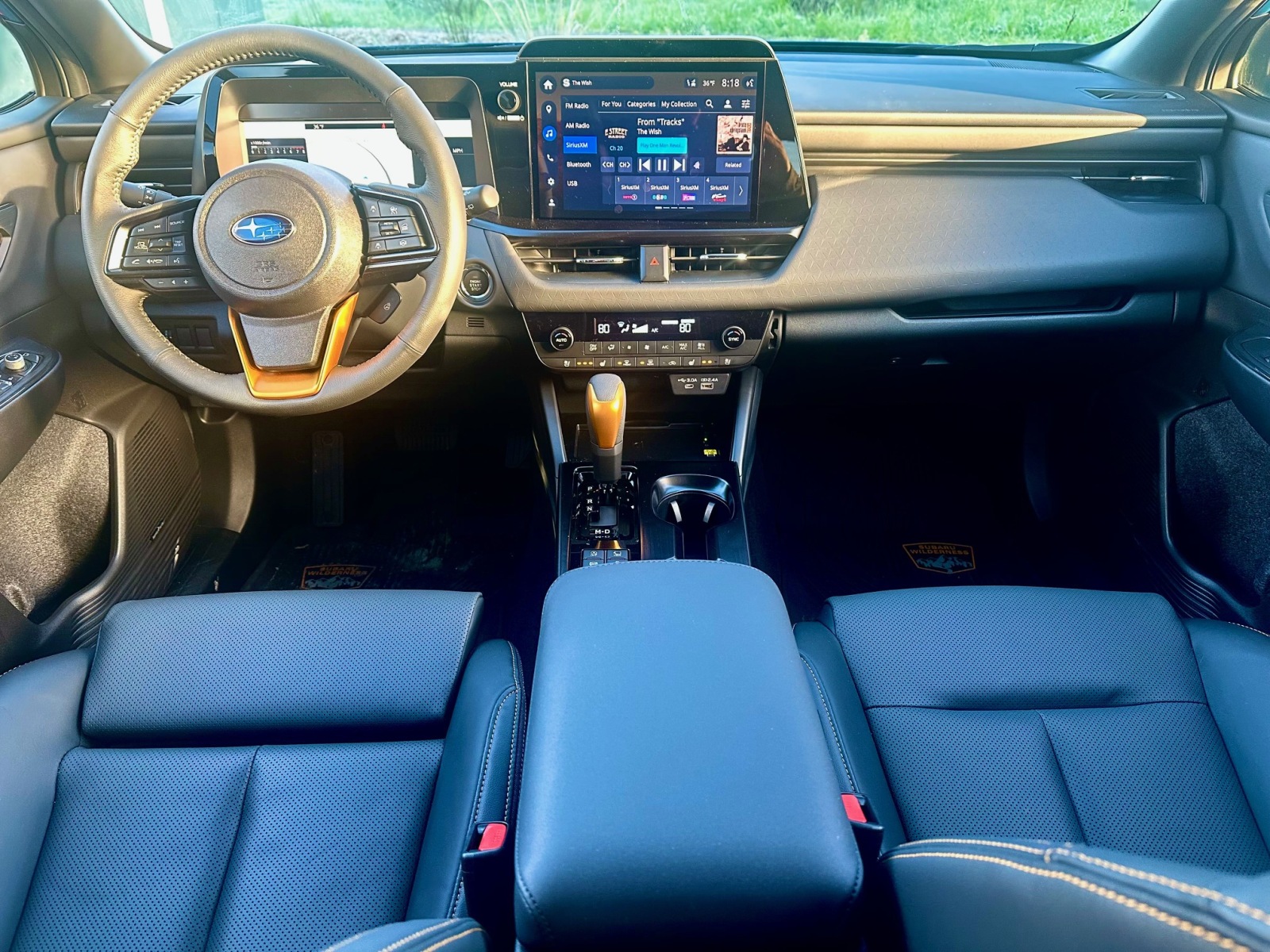 There is one standard Outback Wilderness interior, with optional seat and technology packages. The base Wilderness is equipped with fully animal-free interior surfaces and water-resistant StarTex (a synthetic upholstery material) in black with copper-colored stitching and the Wilderness logo embroidered on the front seat headrests. It comes with thick rubber all-weather mats and a rubber cargo tray. We put these to good use as driving off-road gets messy and the mats and tray captured all of the gunk we left behind.
