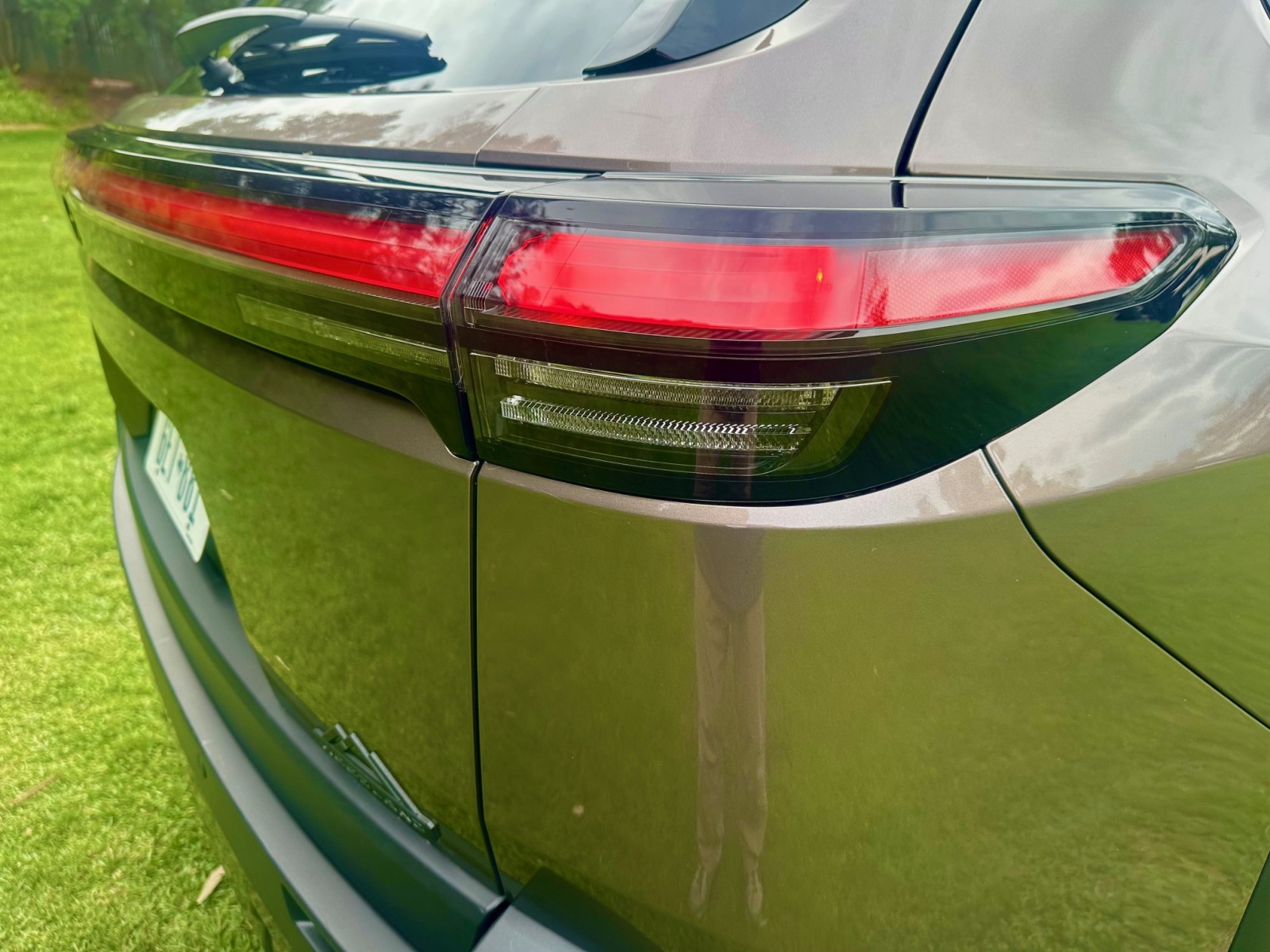 The front and rear overhangs are short, with low profile roof rails framing the optional power sunroof. The foot-activated power lift gate has an interesting dual-wing ducktail top spoiler with a more conventional lip spoiler at the bottom of the steeply sloped glass. Narrow LED tail lights, with a connecting light strip, take-up little space on the rear.
