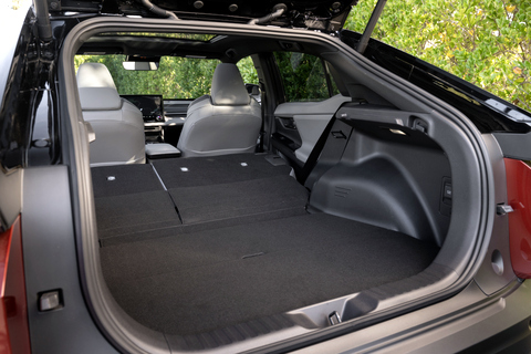 The all-new, all-electric C-HR is fun to drive, and even with the sloping roofline, there is adequate rear seat headroom. This will be a favorite of singles, couples and maybe families just starting out. The all-electric driving range is more than enough for almost all needs