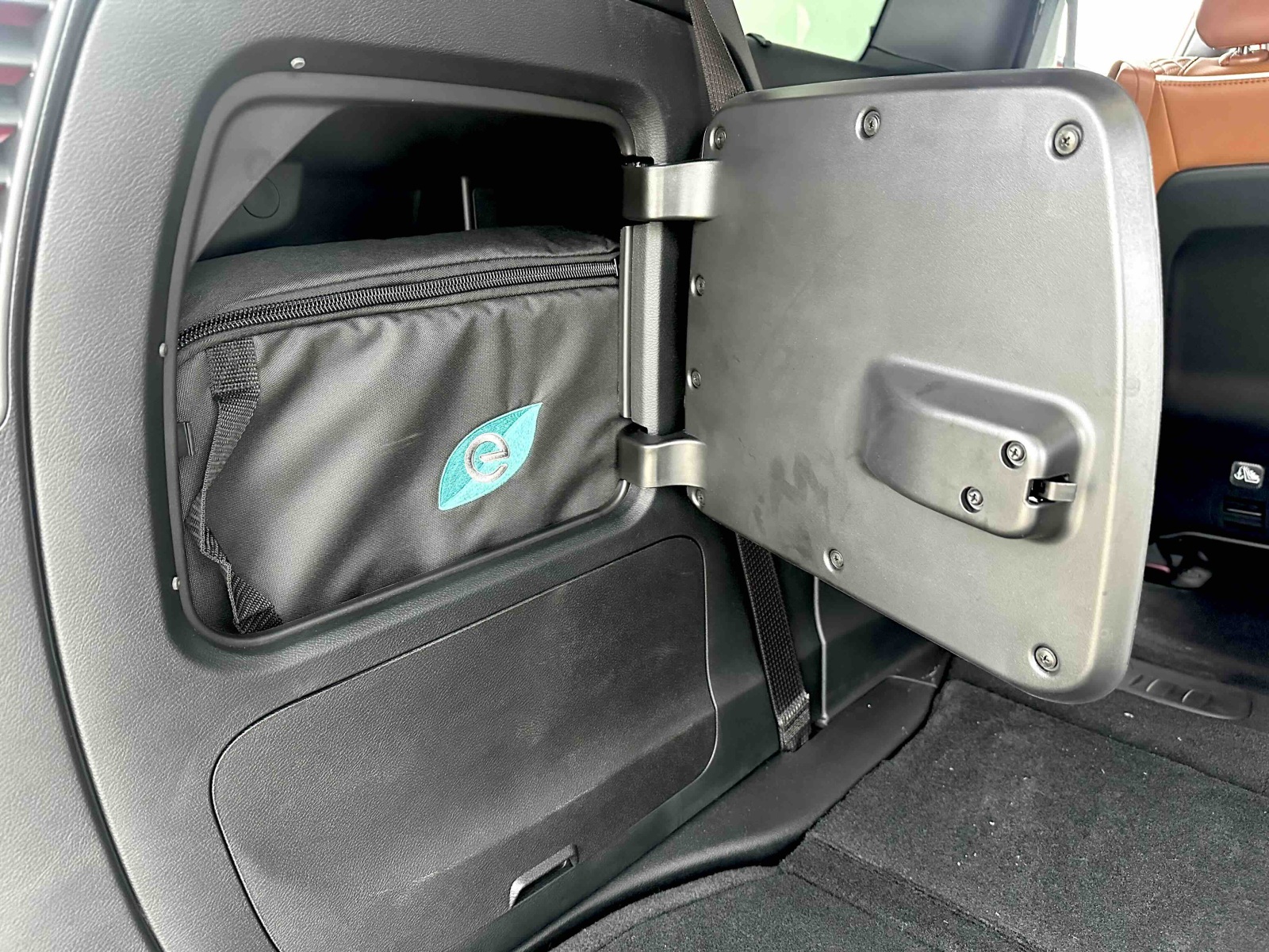 Third-row passengers get a USB charge port and cup holders. And those third-row seats quickly and easily flip forward and down, as part of the Stow ’n Go system, hiding under the floor. When down, the storage space is impressive and very usable. The charge cord is neatly stored in a compartment in the rear cargo area.