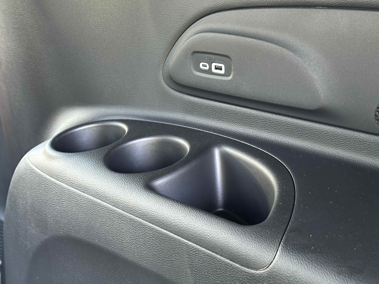 Third-row passengers get a USB charge port and cup holders. And those third-row seats quickly and easily flip forward and down, as part of the Stow ’n Go system, hiding under the floor. When down, the storage space is impressive and very usable. The charge cord is neatly stored in a compartment in the rear cargo area.
